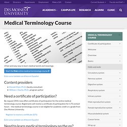 Course Syllabus HLTH 3101 Medical Terminology The University of Texas at Dallas Course Info Medical Terminology Online for Medical Terminology: A Short Course The services include a toll free telephone number for immediate assistance ... Document Retrieval